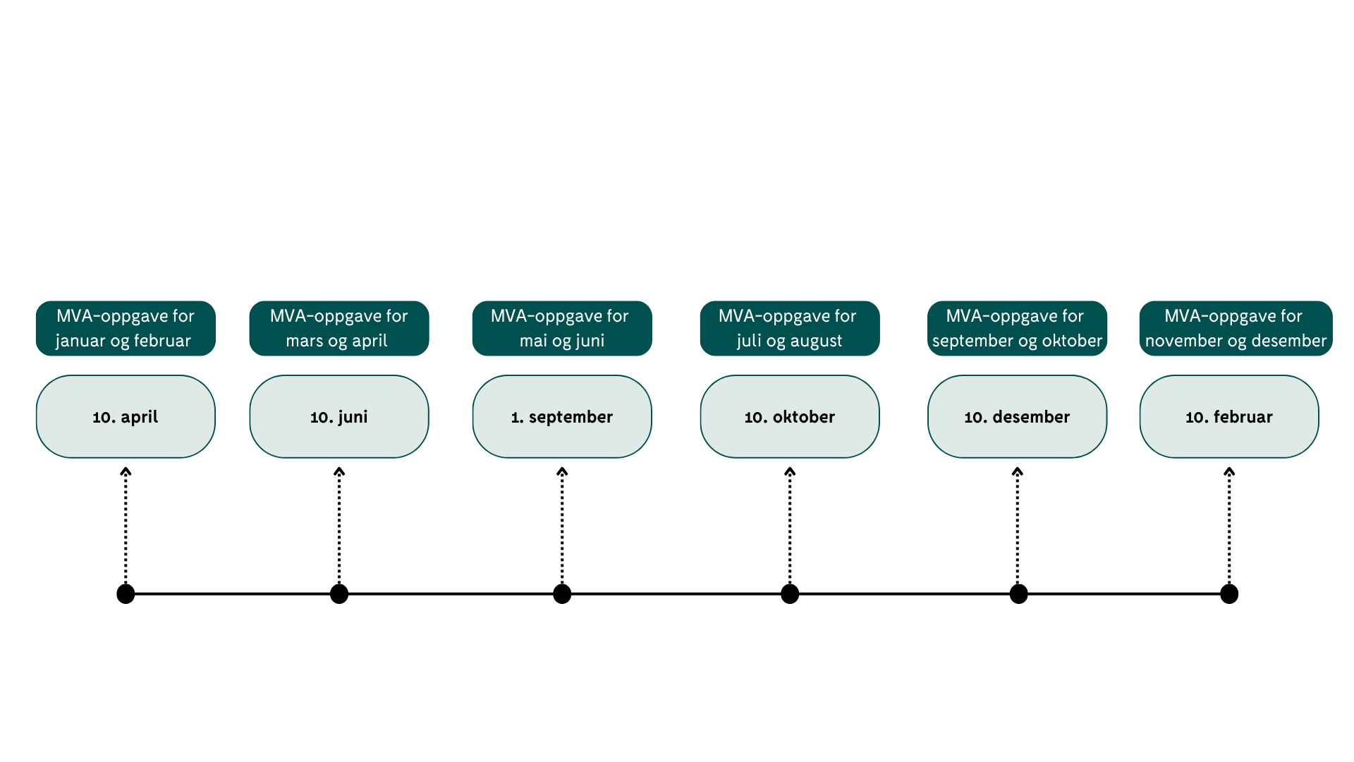 - 6. mva-frist, for november/desember: 10. februar (2026)